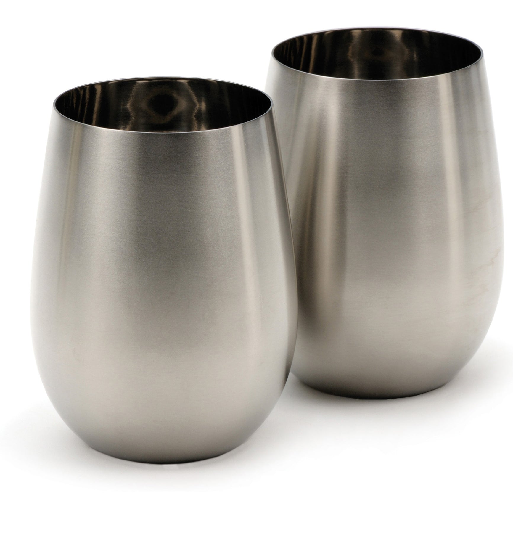 Each glass measures 3.5 inches in diameter by 4.5 inches tall. These 18-ounce stemless Stainless steel glasses keep wine, cocktails and sodas chilled longer than glass or crystal.