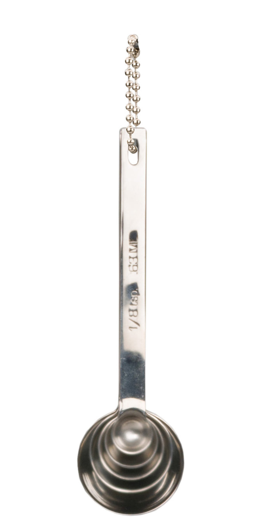 Includes 1 Tbsp, 1 teaspoon, half-teaspoon, one-quarter teaspoon and a one-eighth teaspoon.