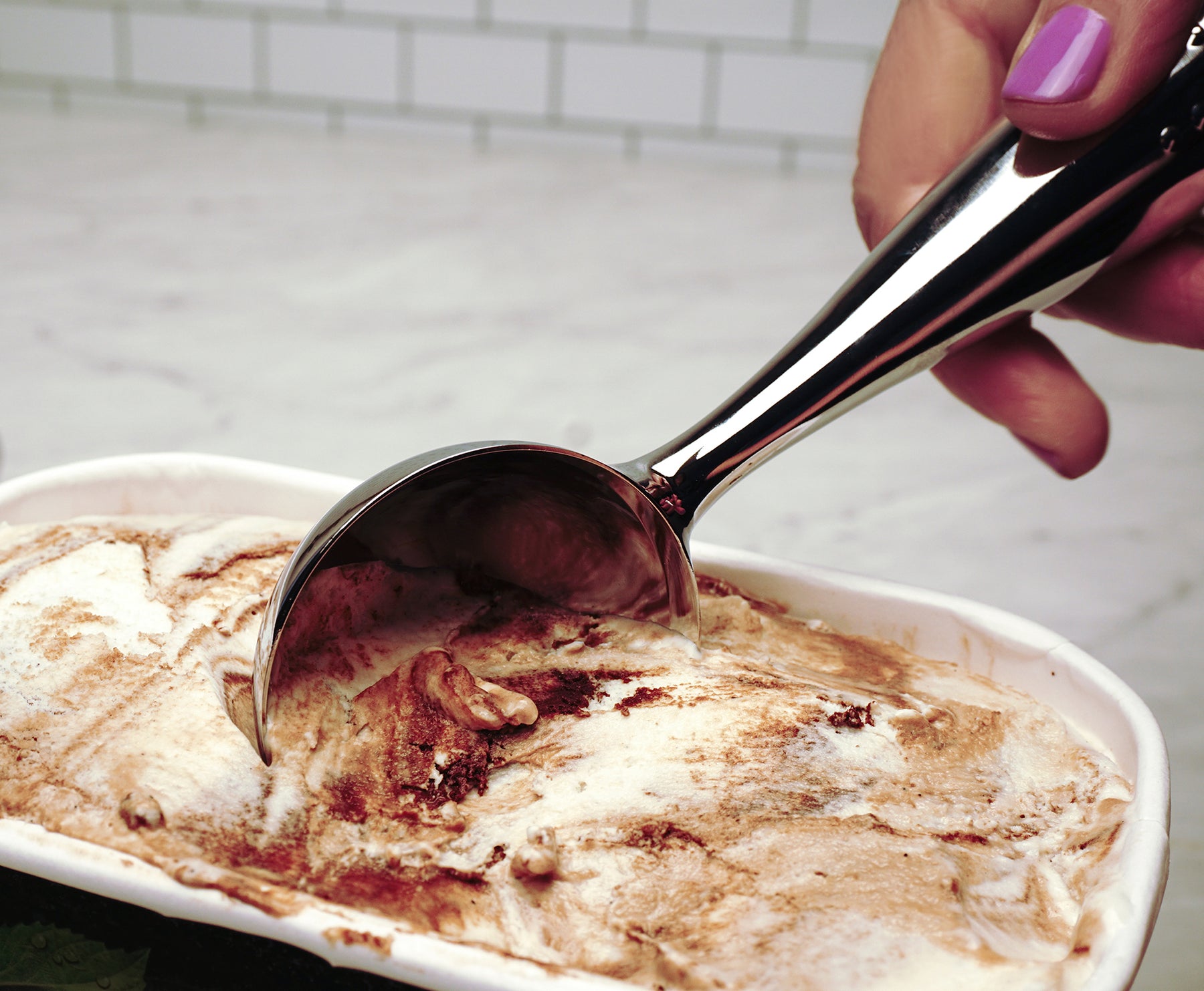 Makes round shaped ice cream portions.