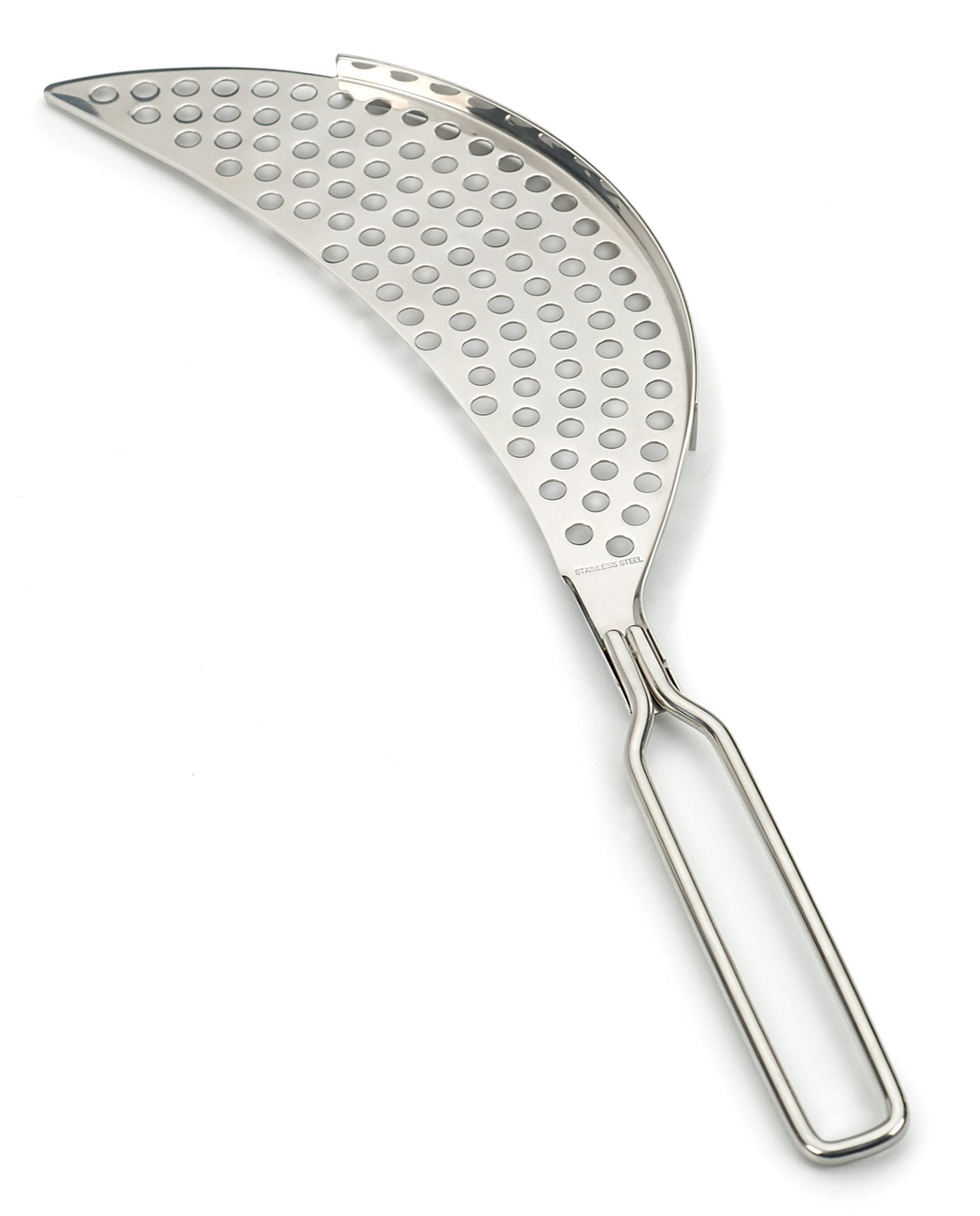 This perfect addition to any chef's kitchen features a crescent design that will fit on most pots and pans.