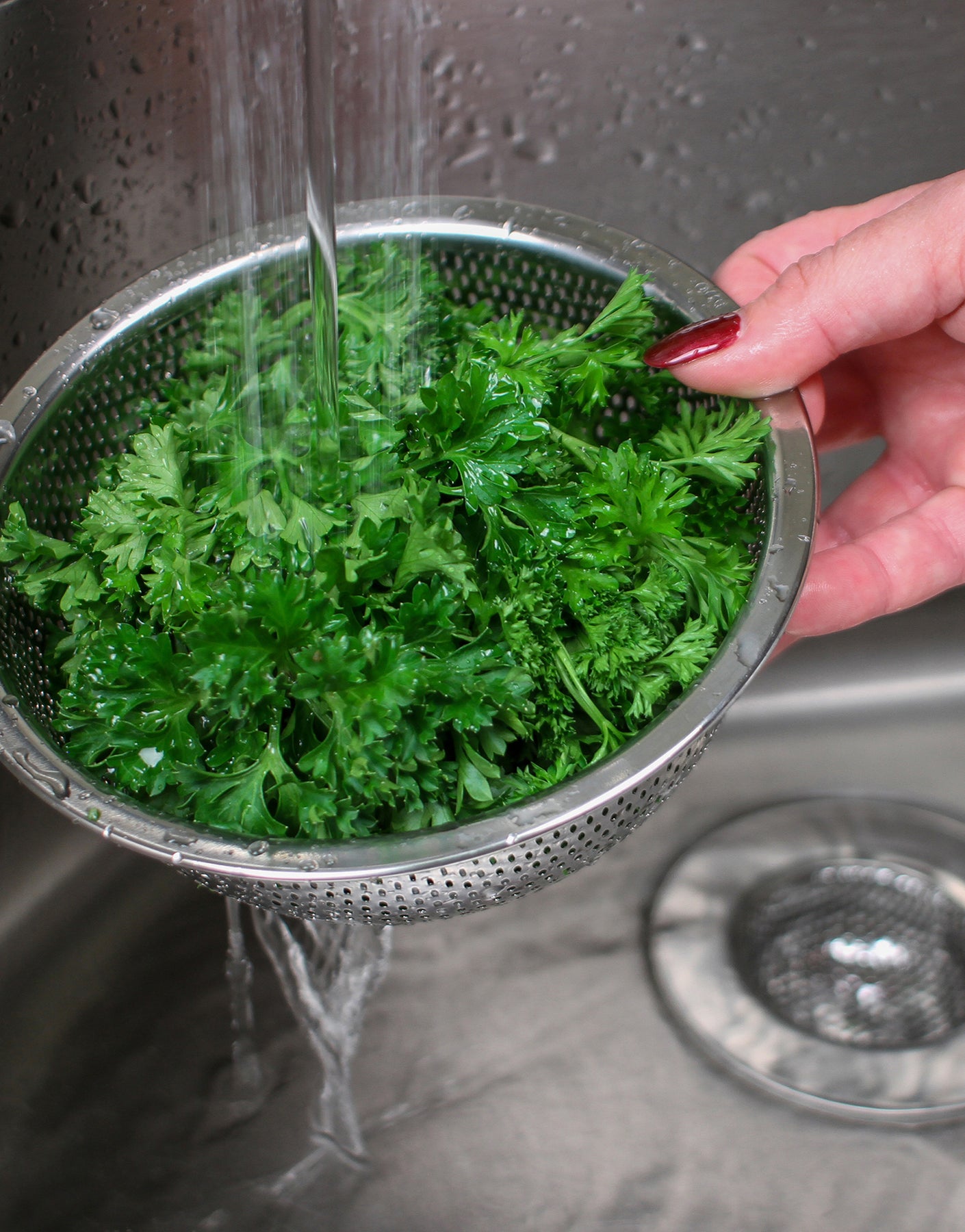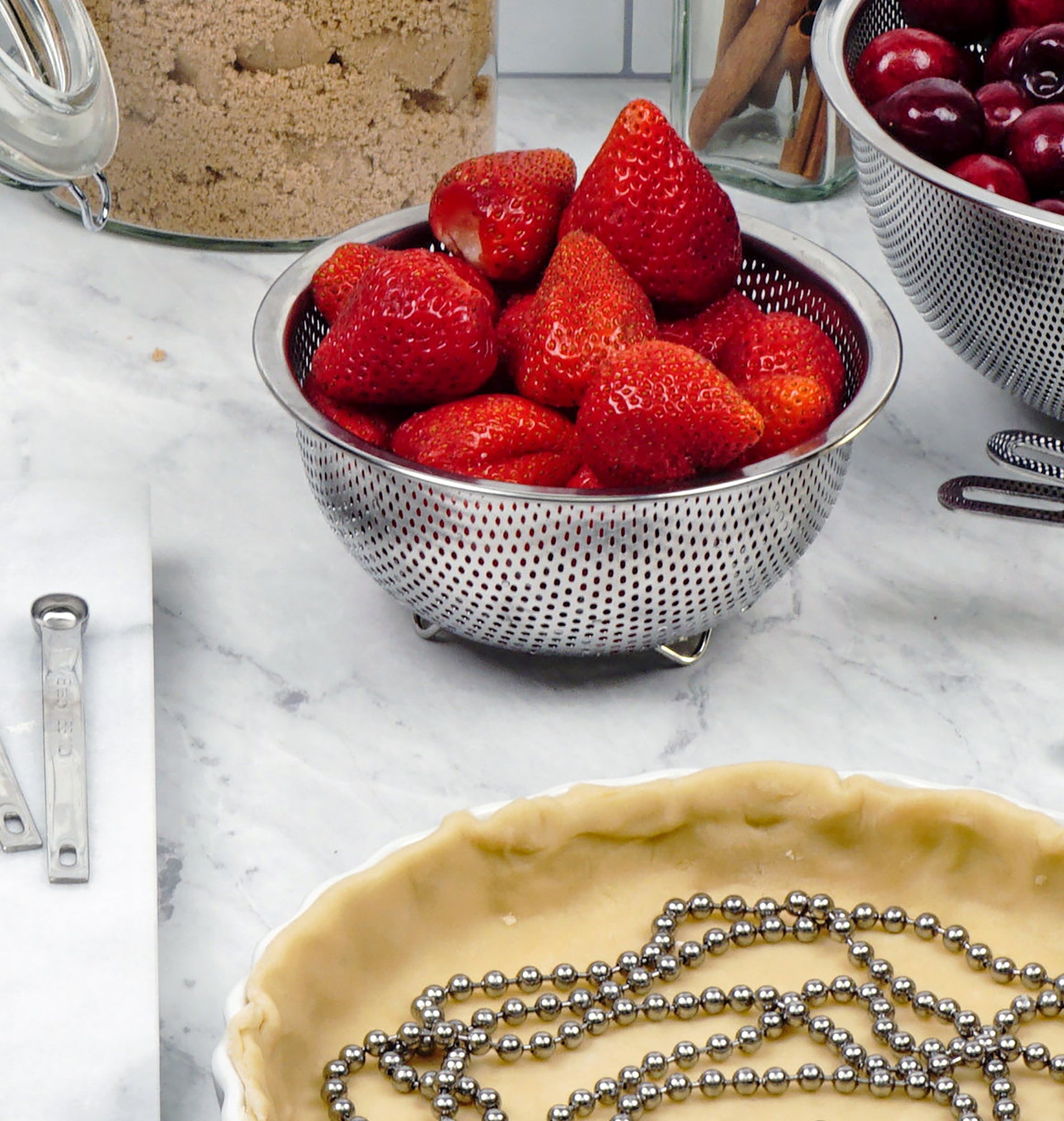 Precision pierced colander is the perfect size to gently rinse and hold berries or herbs.