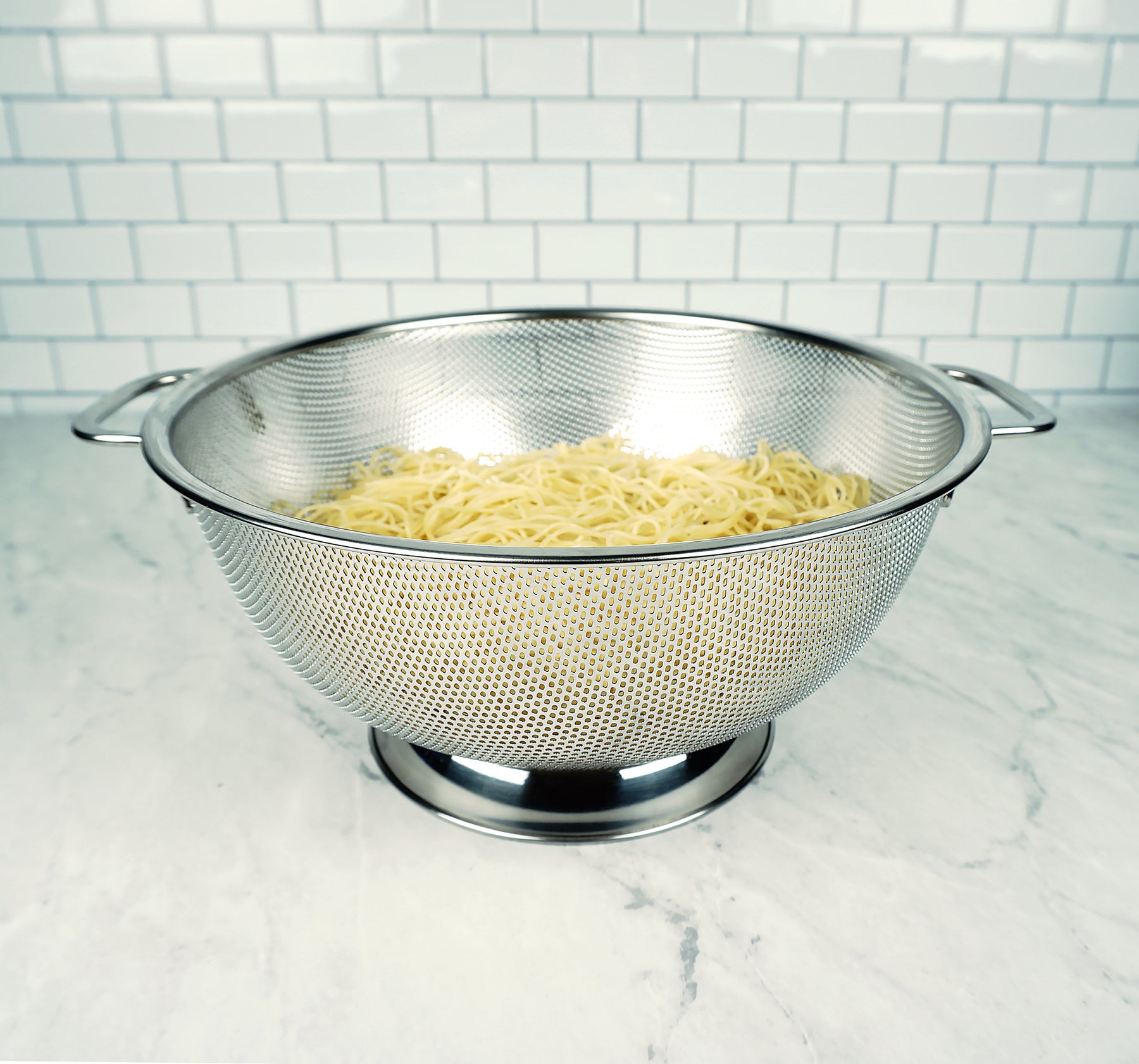 Our original design Precision Pierced Colander is covered from top to bottom with tiny, precision pierced holes that allow water to drain freely.