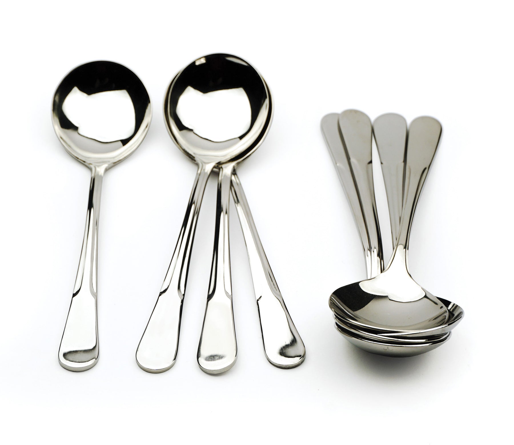 Beautiful quality set of 8 soup spoons, this simple design can be paired with any flatware you own and looks great at the table.