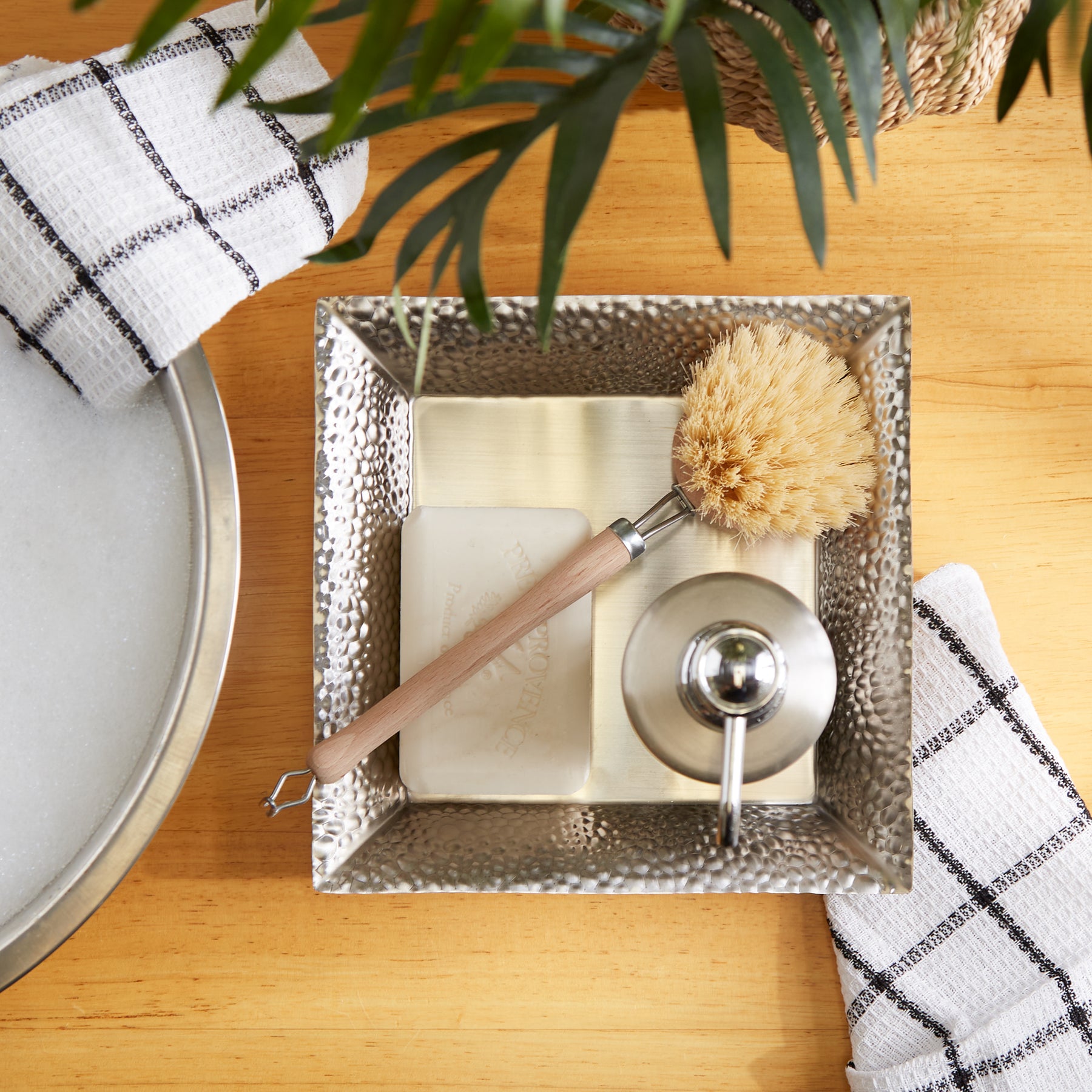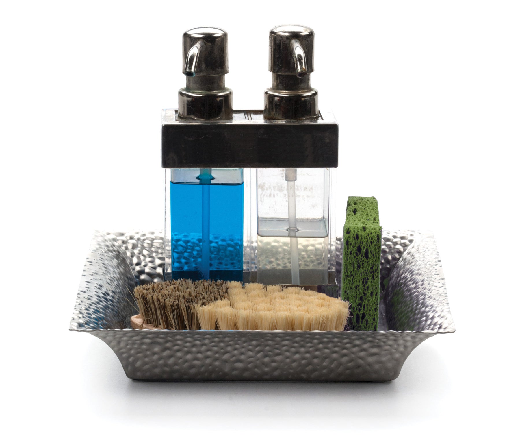 Great for holding soaps and sponges in the kitchen or bathroom. Can also hold oils vinegar and more.
