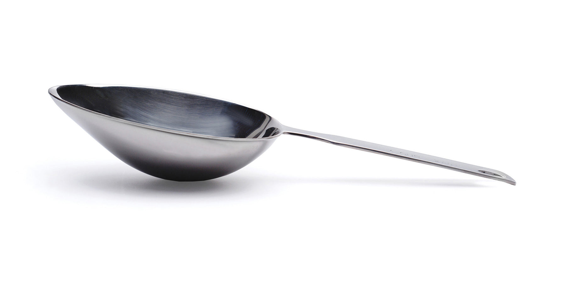 This highly polished scoop is great for portioning dry ingredients and pet food.