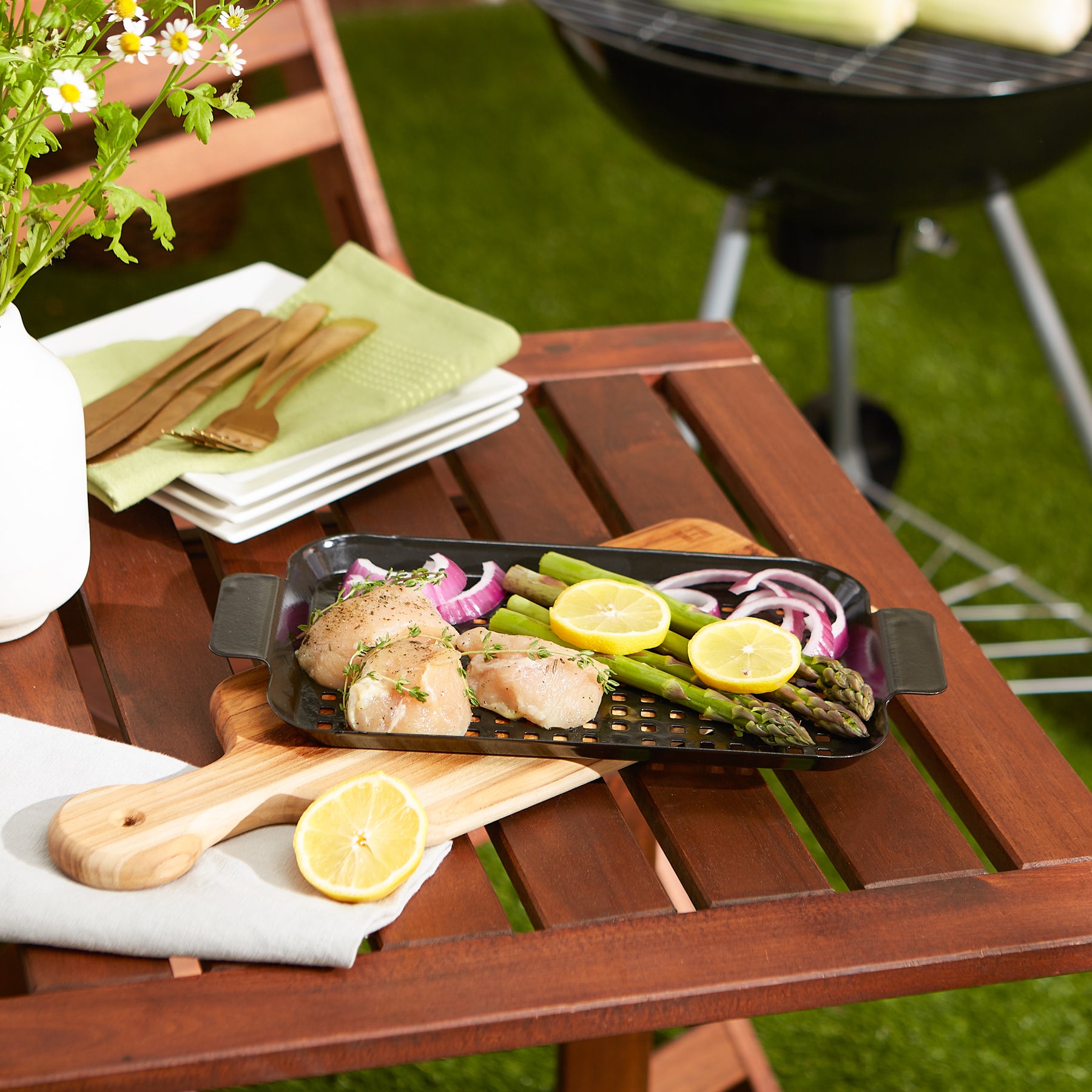Cook vegetables, shellfish, and smaller cuts of meat without them falling through the grates.
