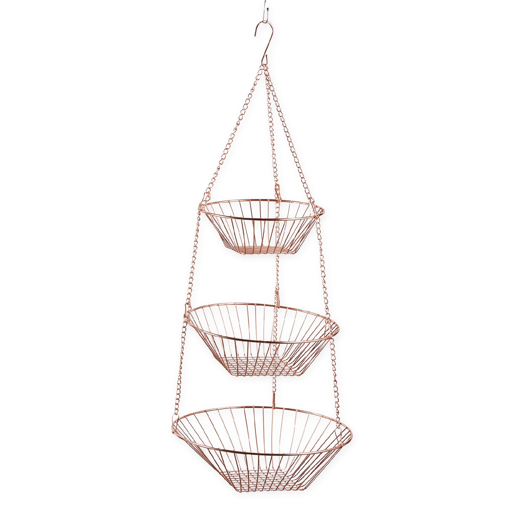 Basket holds up to 10 pounds, and measures 8 inches, 10 inches and 12 inches in diameter with a 30-inch overall length when hung.