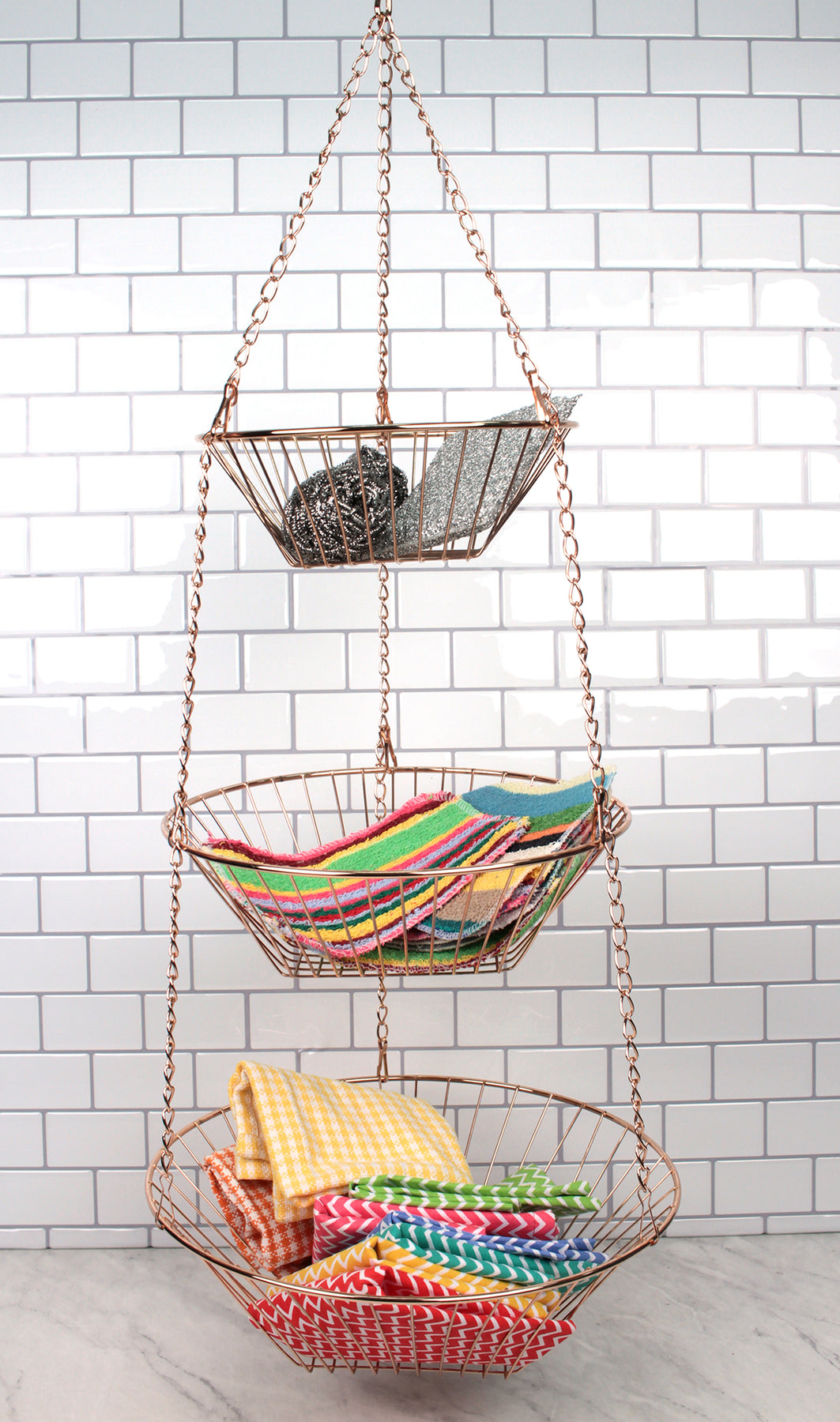 Organize your kitchen, bath, laundry room, kids room, art supplies, pet toys, and more. Hang this elegant basket or split it apart into 3 handy storage baskets.