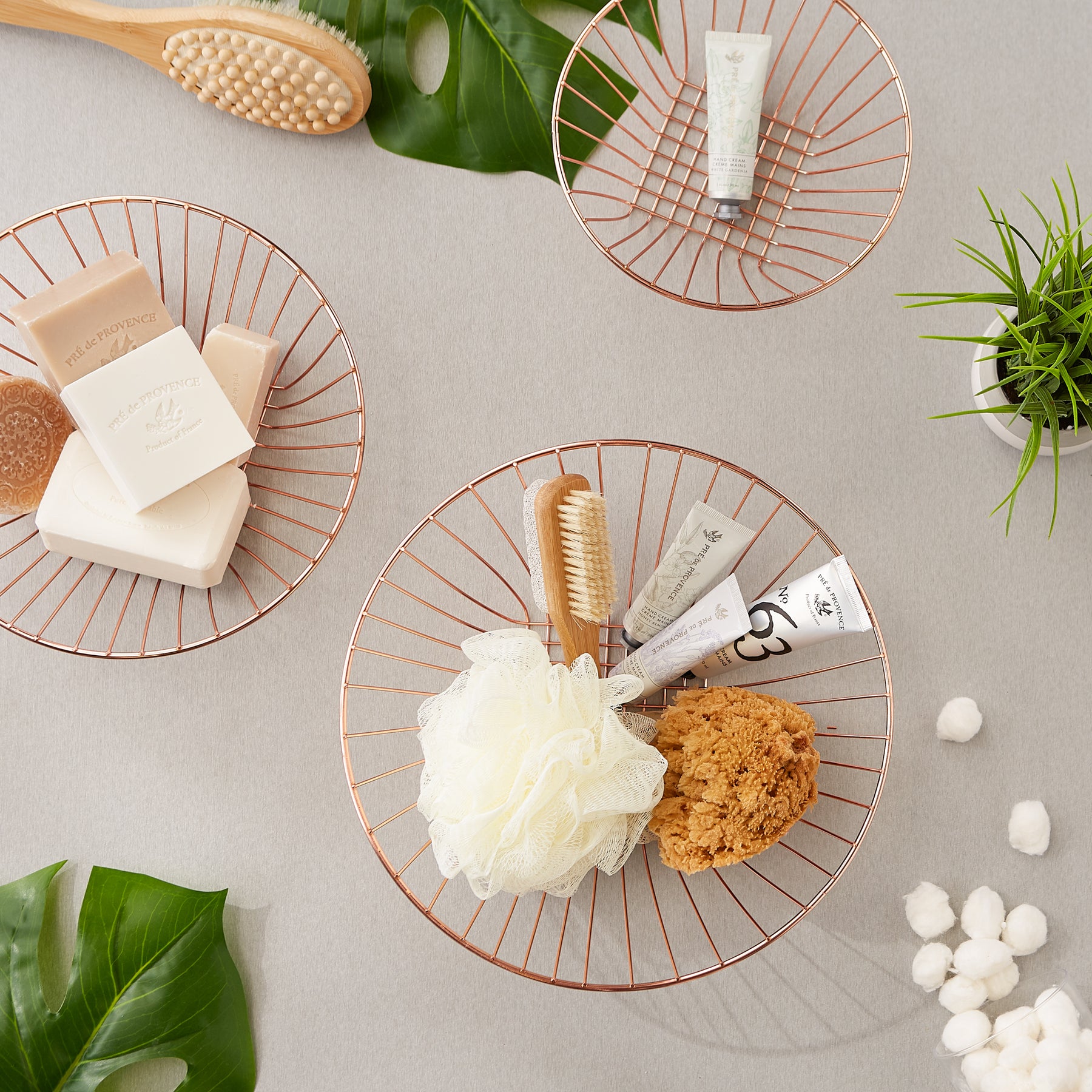 Woven steel wire construction provides durability, while also adding a pleasant design piece.