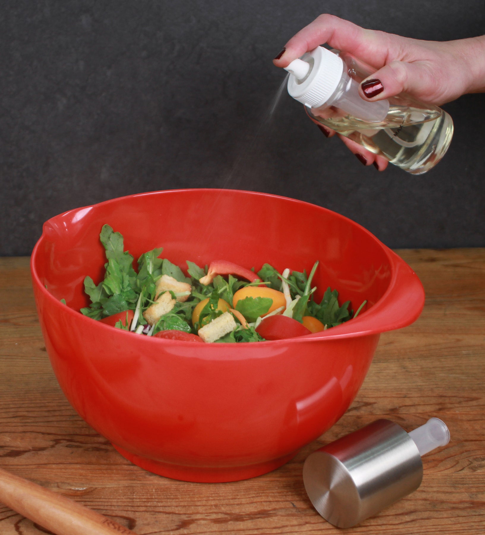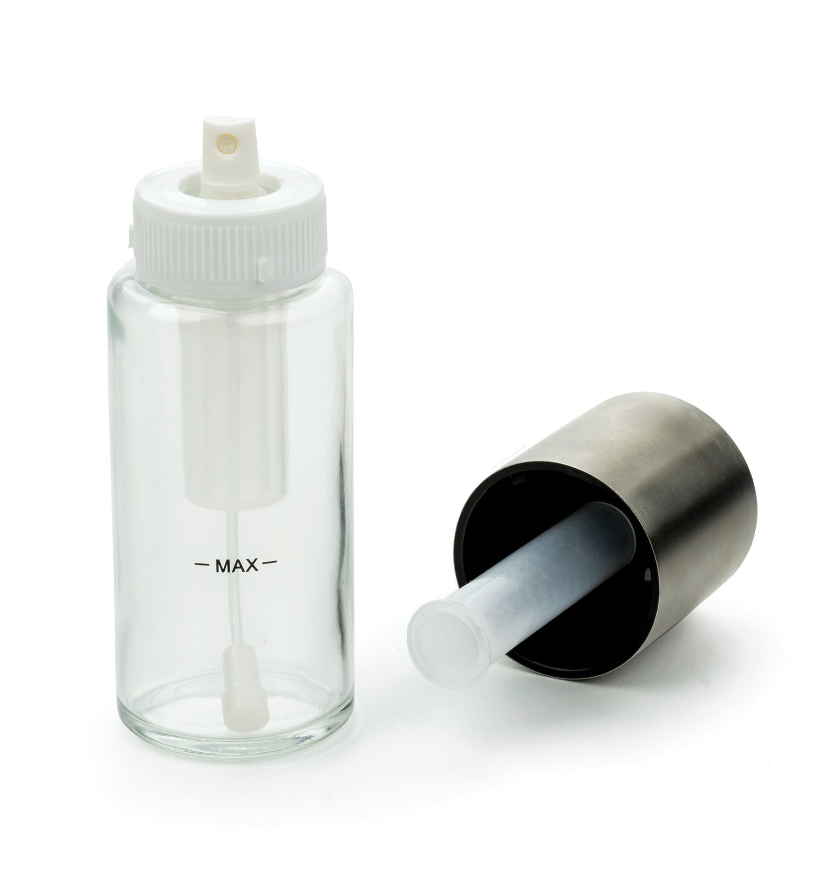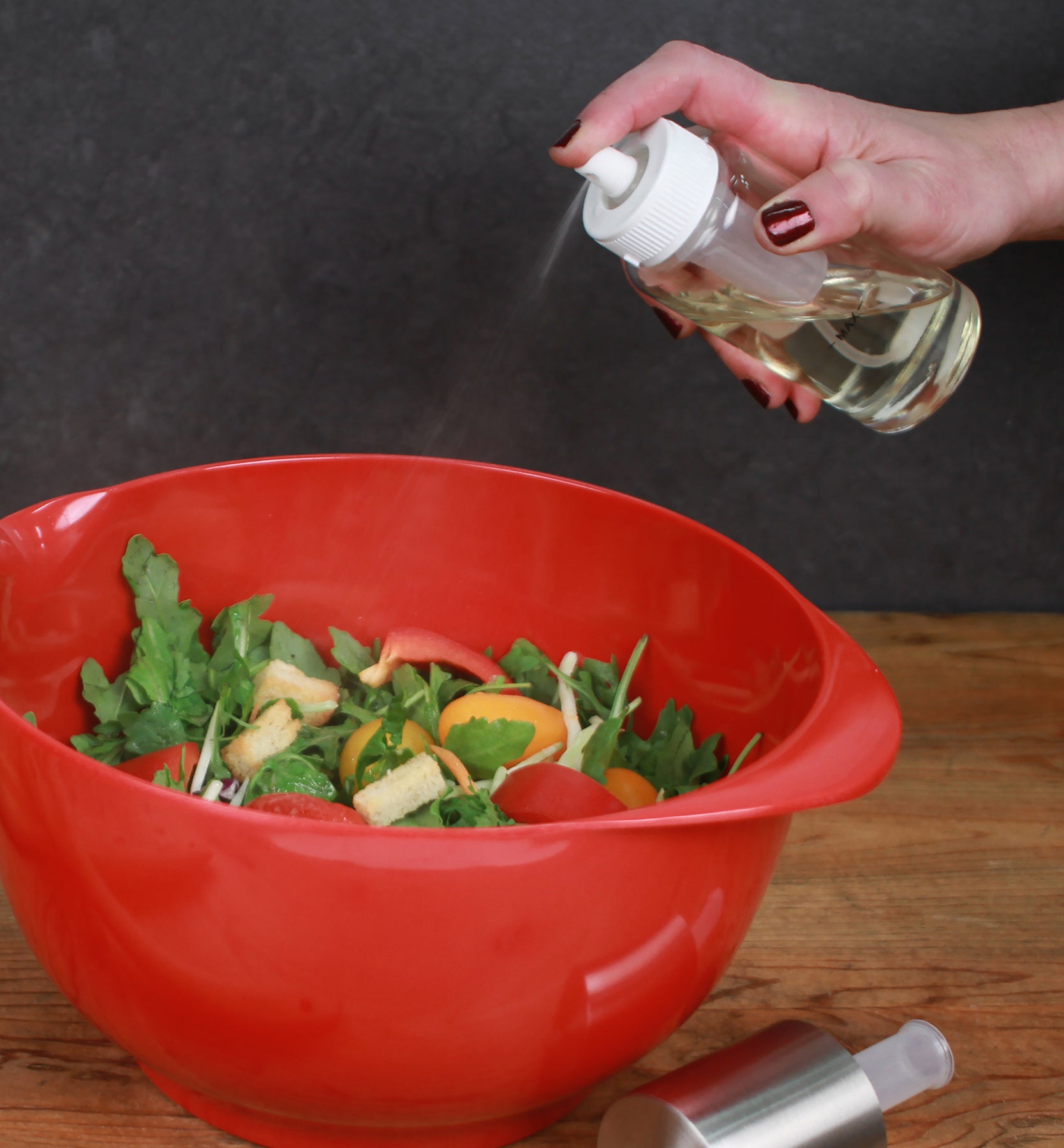 Mess free, glass oil pump makes spreading and spraying cooking oil a breeze.