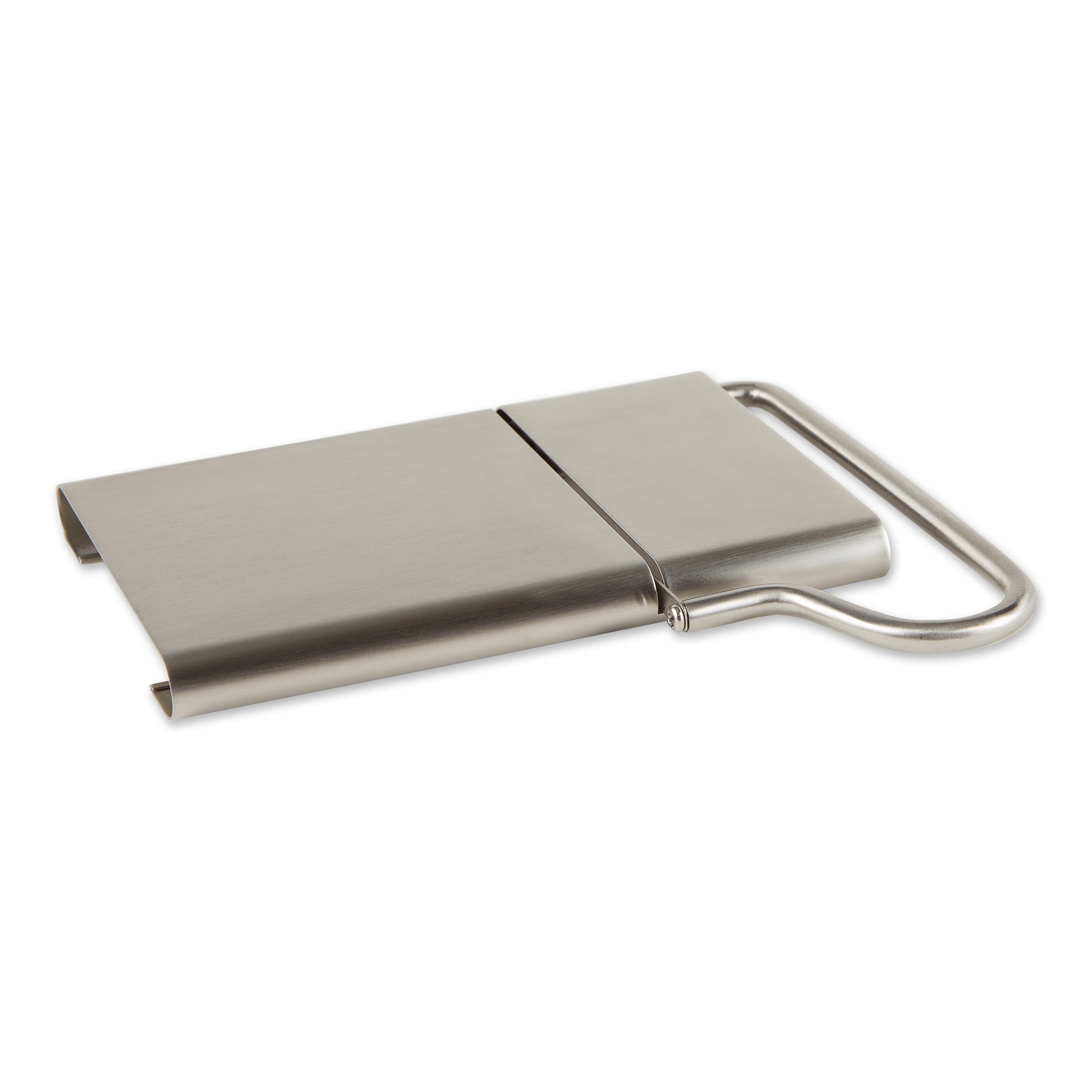 Sleek satin finished stainless steel cheese slicer for the well styled modern kitchen.