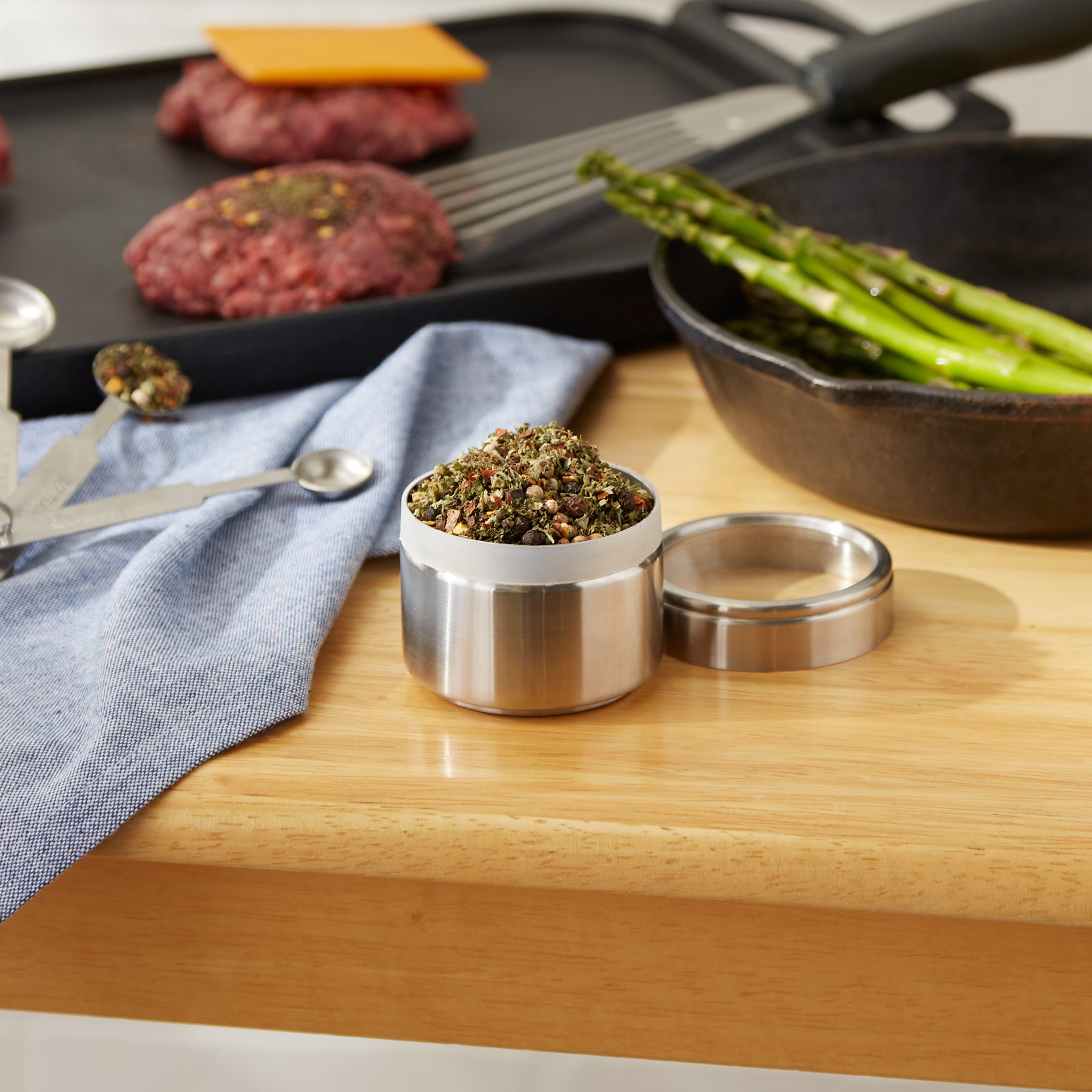 Measures 2 inches tall with a 2.5 inch diameter. Perfect for holding herbs, spices, and more.