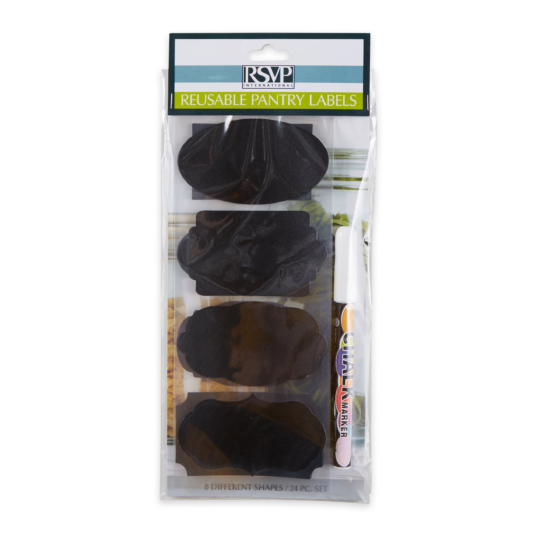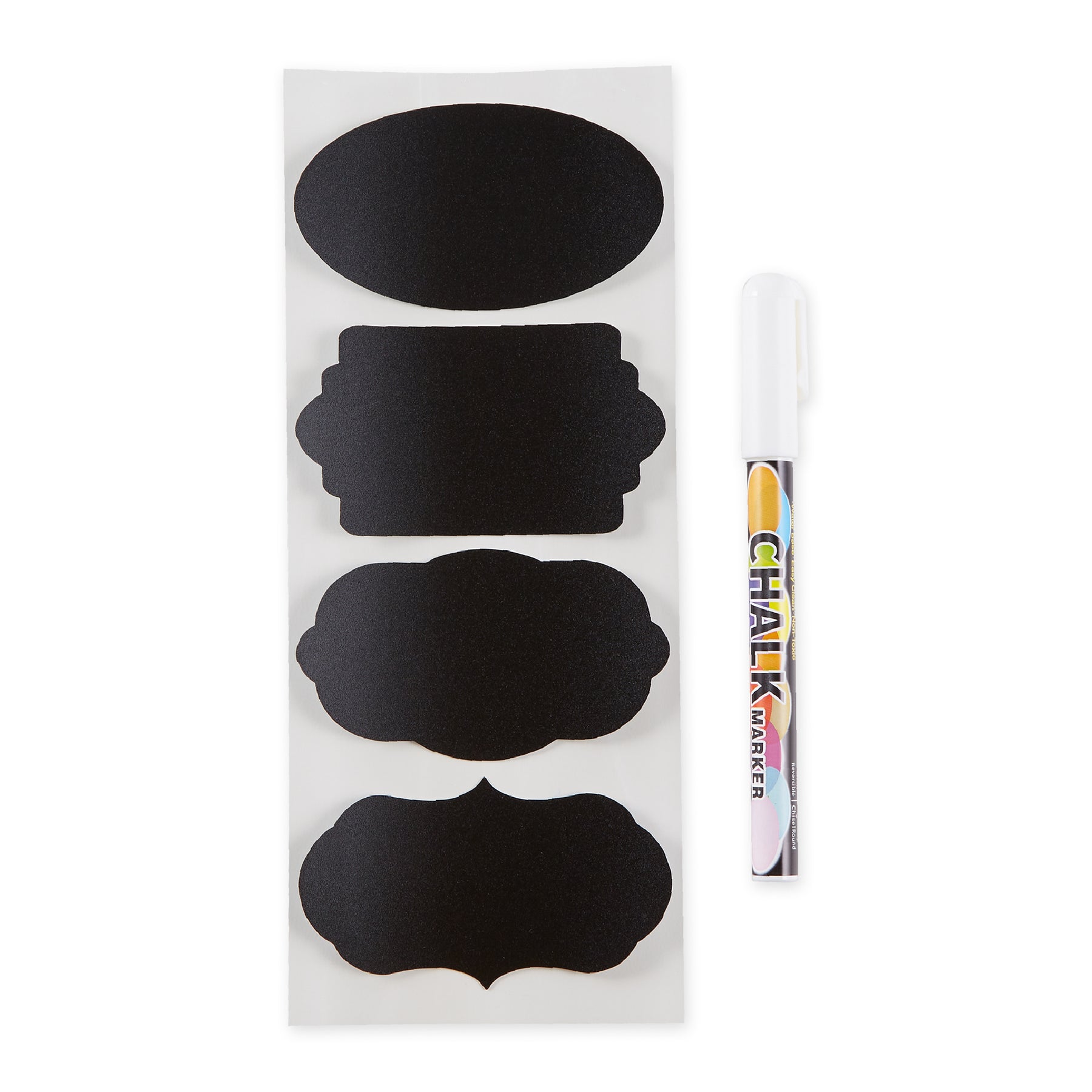 Each set includes 24 labels. 3 each of 8 shapes and a chalk marker.