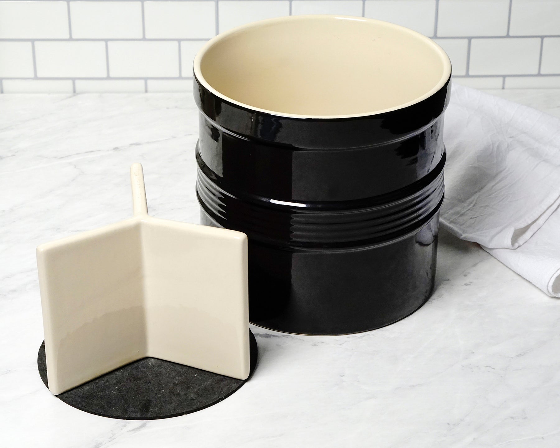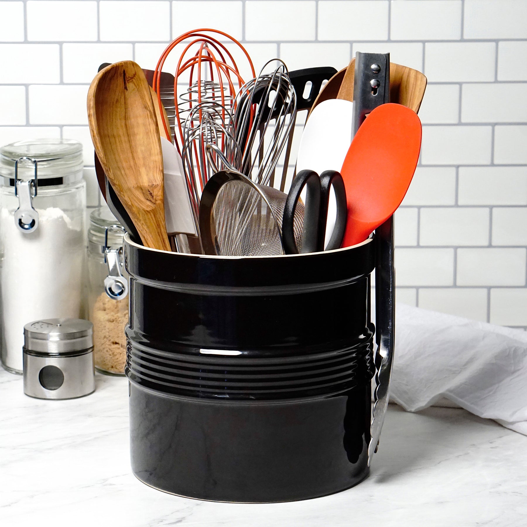 Keep every tool in the kitchen conveniently accessible in our generously oversized tool crock.